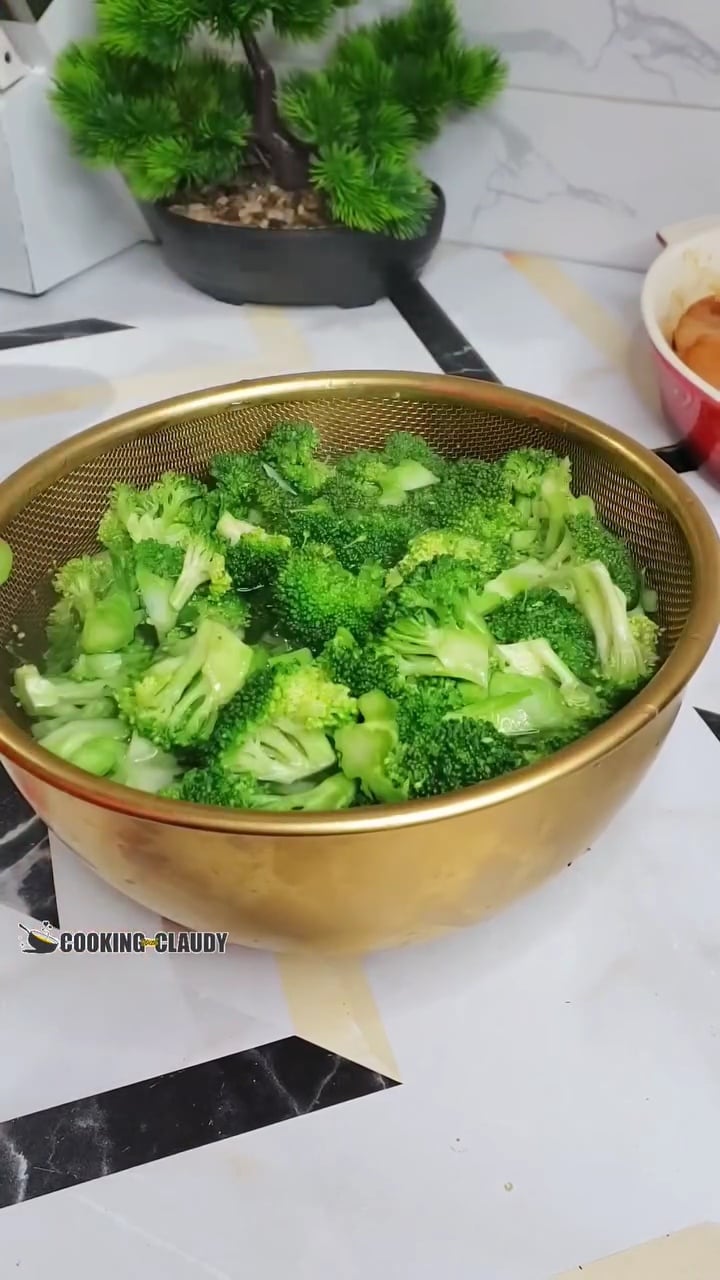 - Add boiling water to the broccoli floret and let this sit for 30 seconds or 1 minute. The water should cover the broccoli. When it has the vibrant green colour, drain the water and add ice cold water to it to lock in the green colour and stop the cooking process. Drain and set aside.3 cups Broccoli florets