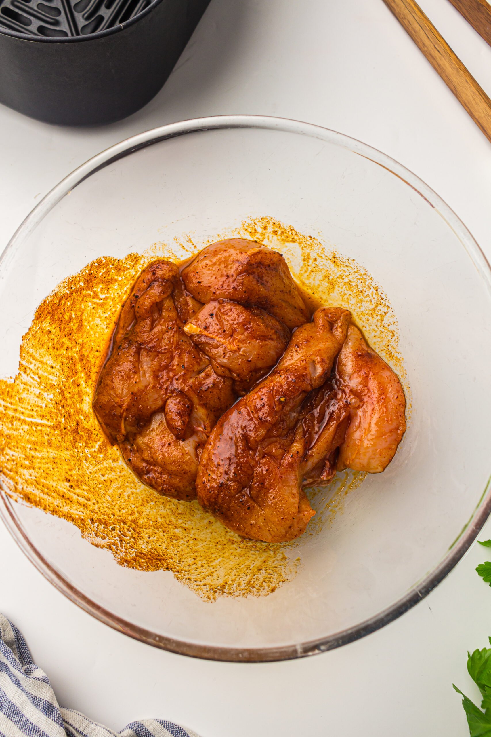 If you want extra juicy chicken, marinate it for 30 minutes or up to 2 hours. This gives the spices time to reach deeper into the meat and keeps it succulent.