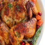 Don't forget to let the roasted chicken rest for a while after it is out of the oven. This helps the juices redistribute, and you'll have the perfectly juicy and succulent chicken.