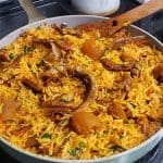 This Native Jollof Rice is a hearty and tasty Nigerian one-pot delicacy. It's simply rice cooked in palm oil with deep flavours from locust beans, crayfish and other earthly spices.